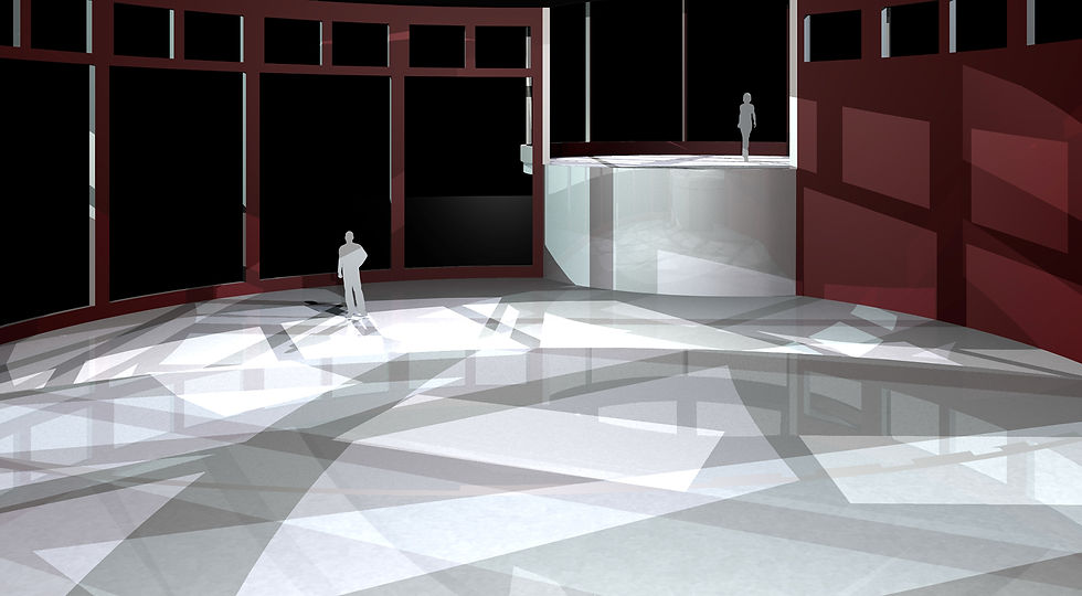 The seventh step: Form Z Environment 3. The seventh step was phase one of my final digital environment. The environment had to be revised and edited from the three dimensional model constructed in the sixth step. In this step, my environment no longer had to use the 30 parts originally created for this project but there had to be some quality that was retained from the more significant shapes I drew from the initial proposal.